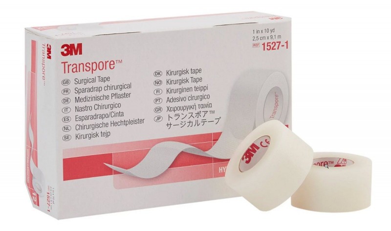 - 3M™ Transpore™ - Suport transparent este o banda adeziva din material plastic, transparent, potrivita in special pentru fixarea branulelor si a furtunelor de perfuzie