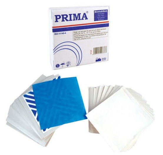 Se introduce în autoclav, se dă drumul la aparat. Testul este cel albastru, înfășurat în foi de hârtie (pus la mijloc). Dacă se face sterilizarea, testul își schimbă culoarea din albastru în verde închis, în timpul fazei de difuzie dintr-un ciclu de sterilizare. Dacă sterilizarea nu este suficientă - rămâne albastru. Testul oferă o confirmare vizibilă a detectării prezenței aerului rezidual (se pune între hârtii ca să se vadă cât de bine pătrunde sterilizarea până la test), în urma unei monitorizări zilnice pentru 3.5 minute, la 134 °C - 137 °C. Nu trebuie să intre în contact cu lichidul.