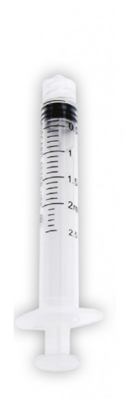Seringi 2/2.5ml ac 23G 1‘ (0.6x25mm-albastru), Luer Lock, din 3 parti (piston cauciuc, corp, garnitura), sterile, 100buc/cutie