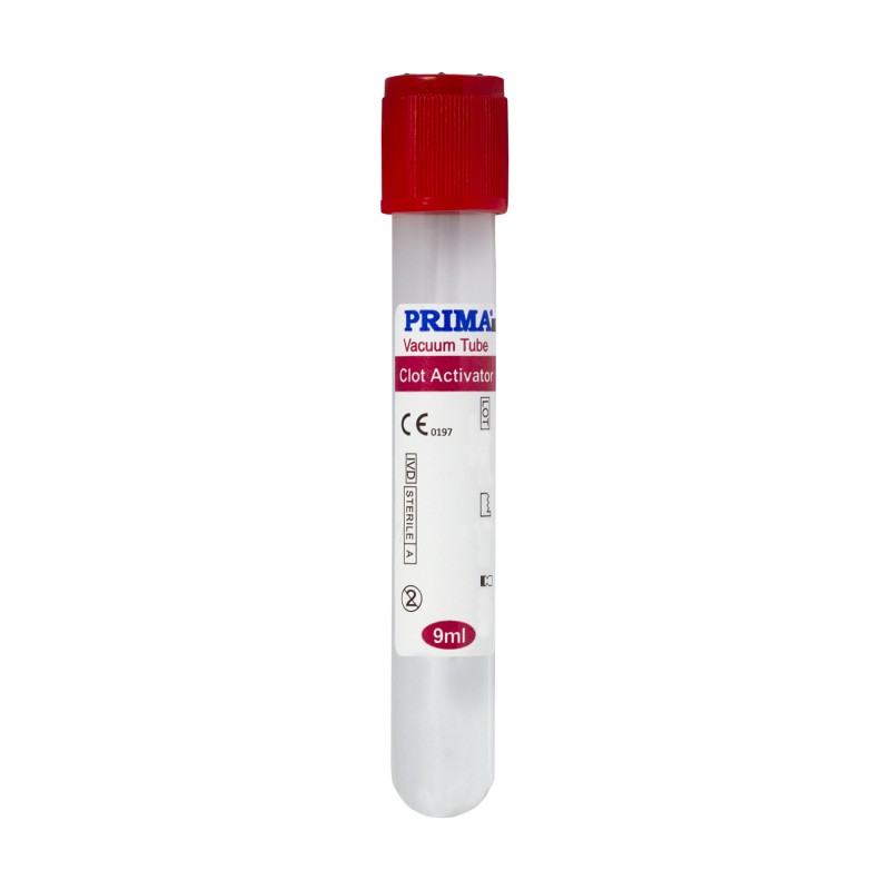 Tuburile microtainer PRIMA sunt utilizate in colectarea probelor de sange. Tubul contine activator de coagulare si se foloseste pentru determinari de biochimie si imunologie. Timp accelerat de coagulare. Vacuum: 9 ml. Produsul este steril, de unica folosinta. Vacutainer biochimie cu clot activator este folosit pentru obtinerea si separarea serului din probele de sange.
