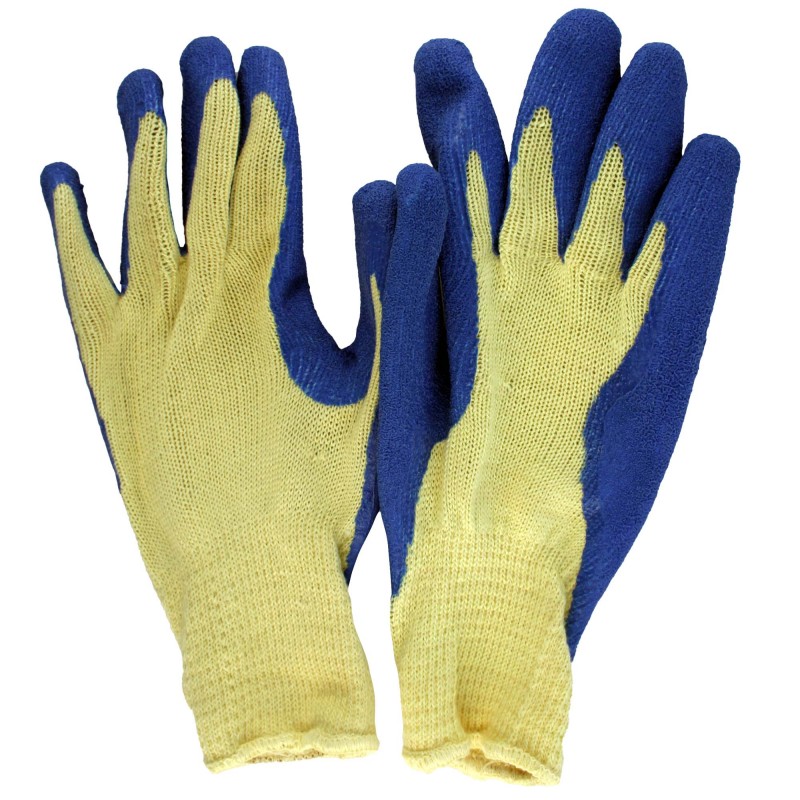 Manusi aderente din bumbac si latex, albastre, marimea L, ce pot fi folosite la la manipularea produselor industriale si a materialelor de constructii, reparatii echipamnete si masini, manipularea si incarcatul marfurilor.