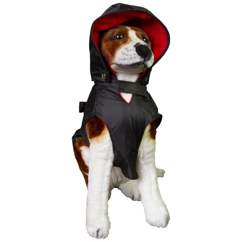 PRIMA Geaca animale impermeabila din fas, gluga detasabila, fermoar spate, prindere cu arici, rosie, marimea 36