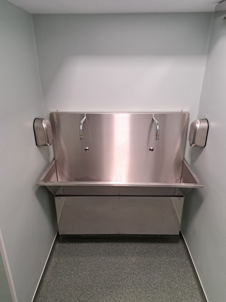 CUSTOMIZABIL 100% - Spalatoarele aseptice din inox pentru spalarea chirurgicala a mainilor pot fi configurate atat in functie de spatiul de montaj cat si de nevoile personalului medical.