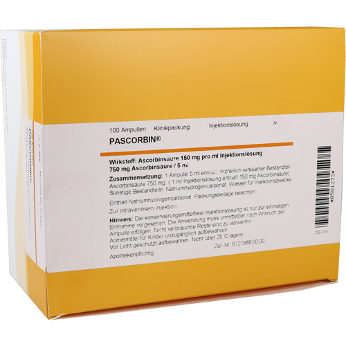Pascorbin– VITAMINA C ÎN FORMĂ INJECTABILĂ – DE 750 MG (100 FIOLE) ÎN PACHET UNITAR